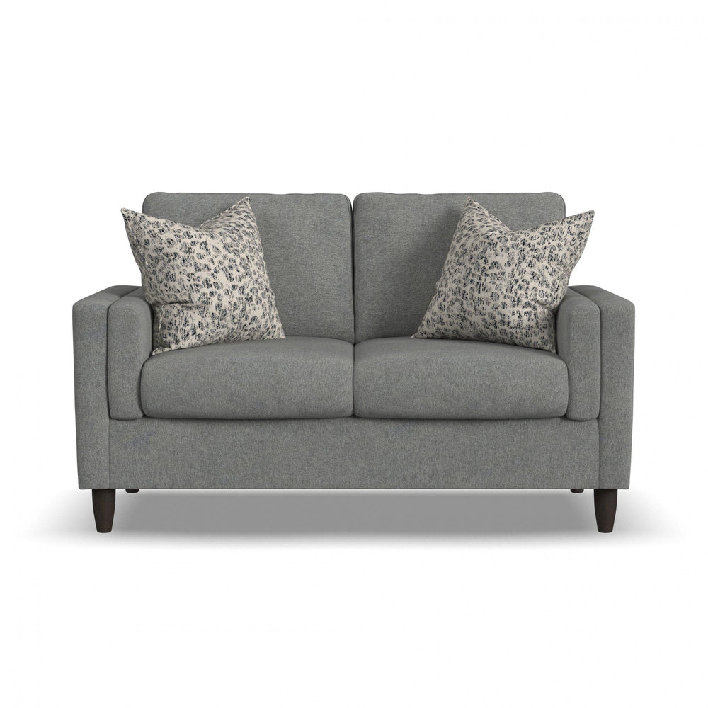 Experience timeless appeal with a modern twist with the Thomas loveseat. Inspired by classic mid-century style and vintage Flexsteel designs, this loveseat features layered arms, round tapered legs and bullnose cushions. Create the perfect style for your home with your choice of upholstery and pillow fabrics. Sized for ultimate versatility, the Thomas loveseat brings casual sophistication and unmatched comfort to any living space.