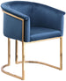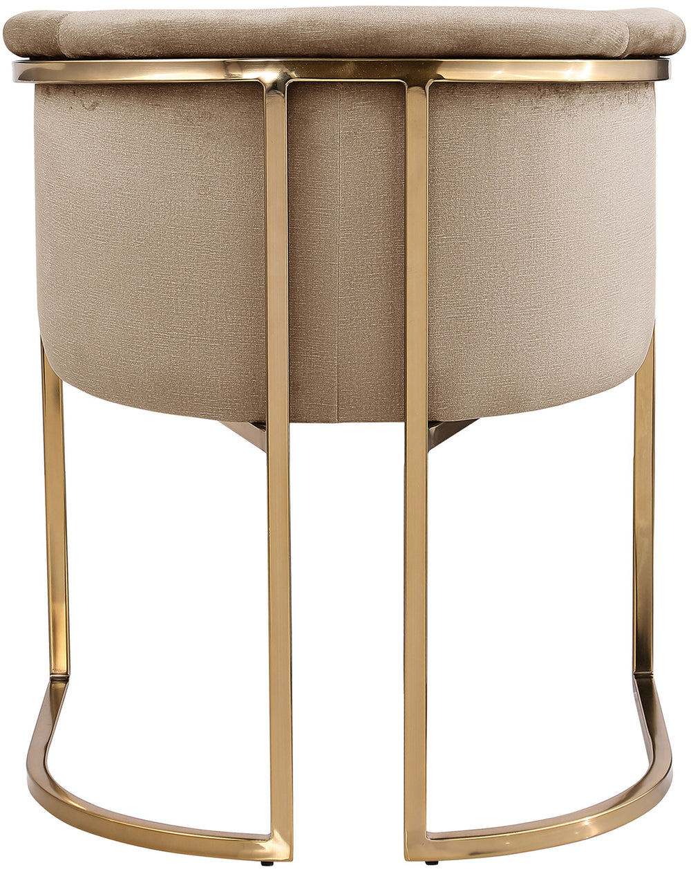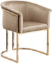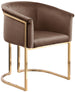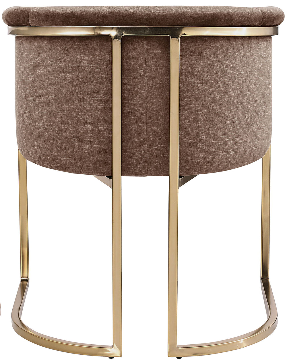 Enjoy body-hugging comfort at every meal with this Tierra velvet dining chair. Rich velvet covers the seat, arms and back of this comfortable yet beautiful chair. The frame is made from durable metal for resilient, long-lasting use, and it features a brushed brass finish for a look that's both modern and elegant. Pair it with the table of your choice for a modern look in your dining room space.