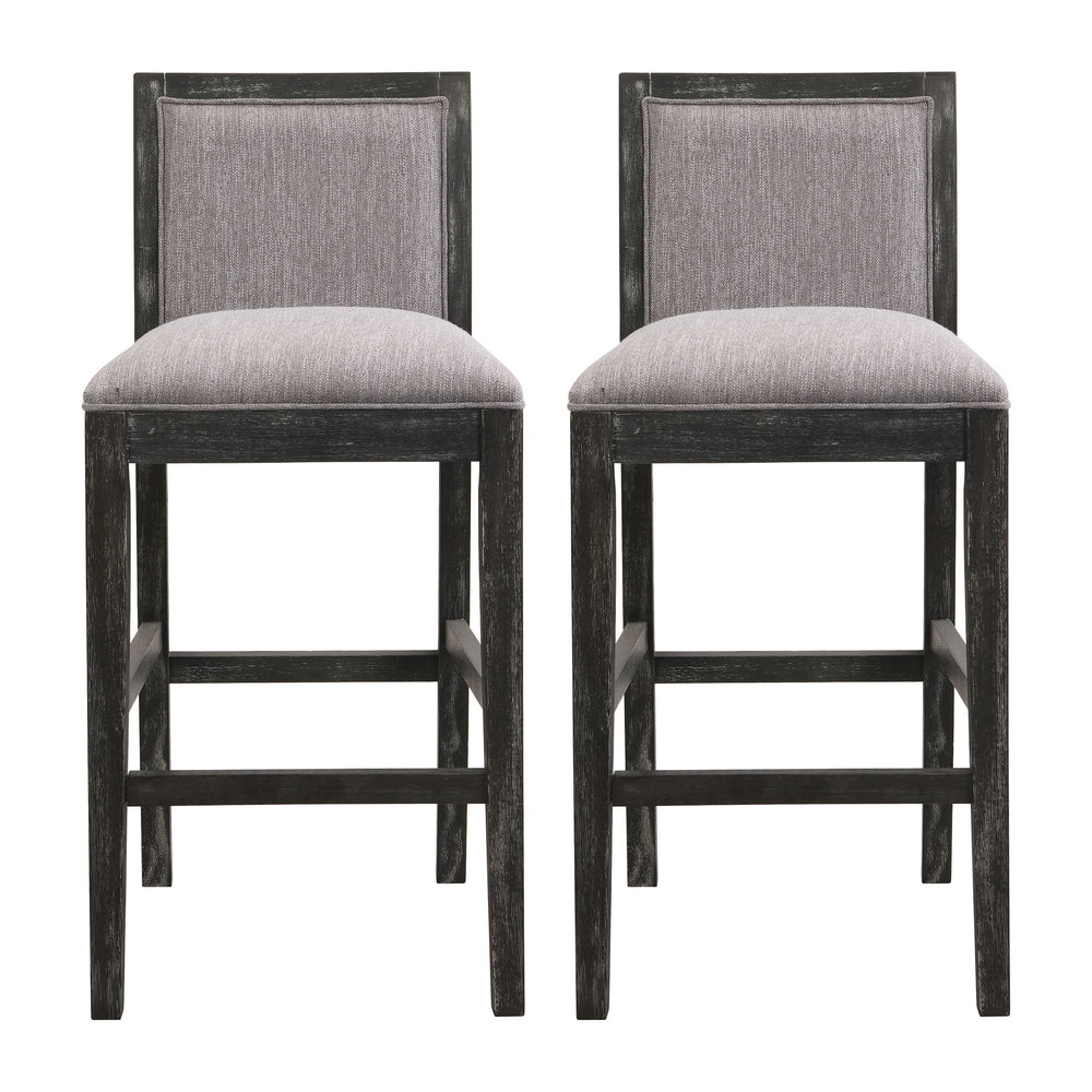 Bar Stools (Set of 2), Rubber Wood Frame, Retro Bar Chairs Suitable For Kitchen Island - Black / Gray 19.0"W x 23.0"D x 41.2"H - 20.06 lb