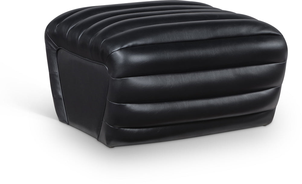 Indulge in a blend of sophistication and comfort with the Vega vegan leather ottoman. Draped in velvety soft vegan leather, this ottoman features bold deep channel tufting that creates a dynamic visual contrast. Its contemporary design elevates your space and invites you to experience luxury in every curve. Perfect for making a statement in your living room, office, or lounge, it redefines modern elegance with its unique and captivating style.