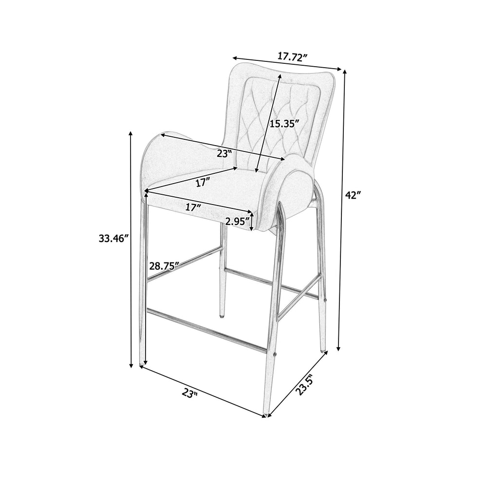Velvet Fabric Counter Height Bar Stools (Set of 2) With Legs And Footrests, 28.75" - Gray 23.5"W x 23.0"D x 42.0"H - 19.84 lb