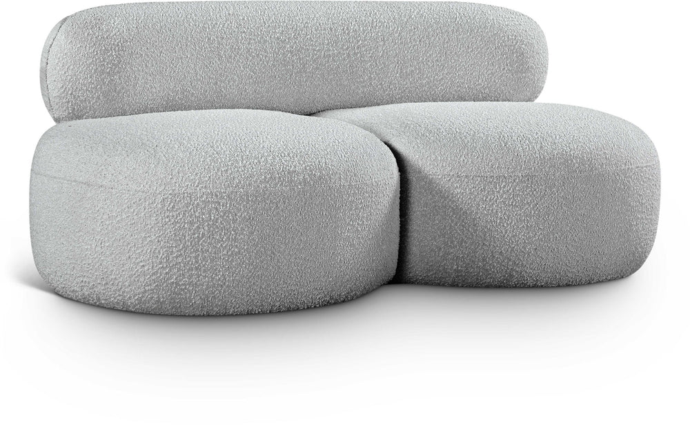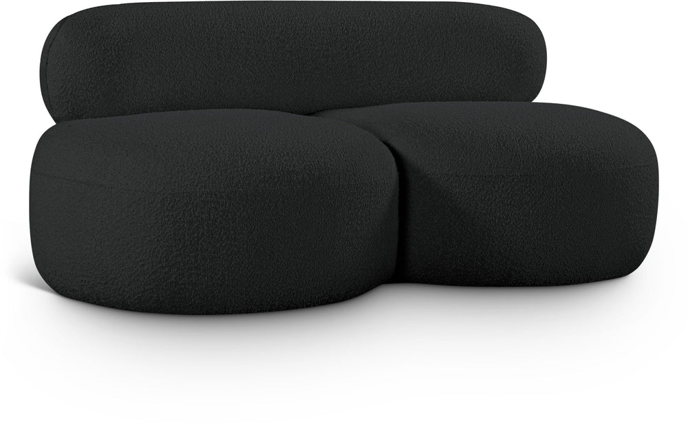 Discover timeless beauty with this Venti boucle fabric living room loveseat that's designed to elevate your interior space. This exceptionally crafted art-deco-inspired chair is part of the Venti collection and boasts an alluring curved shape to add elegance and refinement to your room. Upholstered in rich boucle fabric, the loveseat has a plush texture that's oh-so-cozy against the skin. The art deco styling makes it a real statement piece, whether you place it in your living room, home office, or your favorite reading nook.