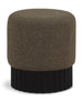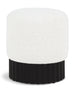 Indulge in the luxurious texture of the Veranda Boucle Fabric Ottoman/Stool. It boasts a rich boucle fabric that is paired with an elegant and sturdy solid wood base, featuring a black finish that highlights the beautiful wood grain patterns. This unique combination of materials creates a perfect blend of style and durability, making it an ideal addition to any modern or traditional interior design.