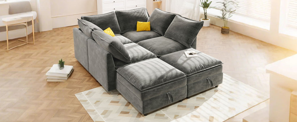 Customizable Configuration: Enjoy the flexibility of a six-piece modular sofa that can be easily rearranged to suit any living space, from compact apartments to spacious living rooms.