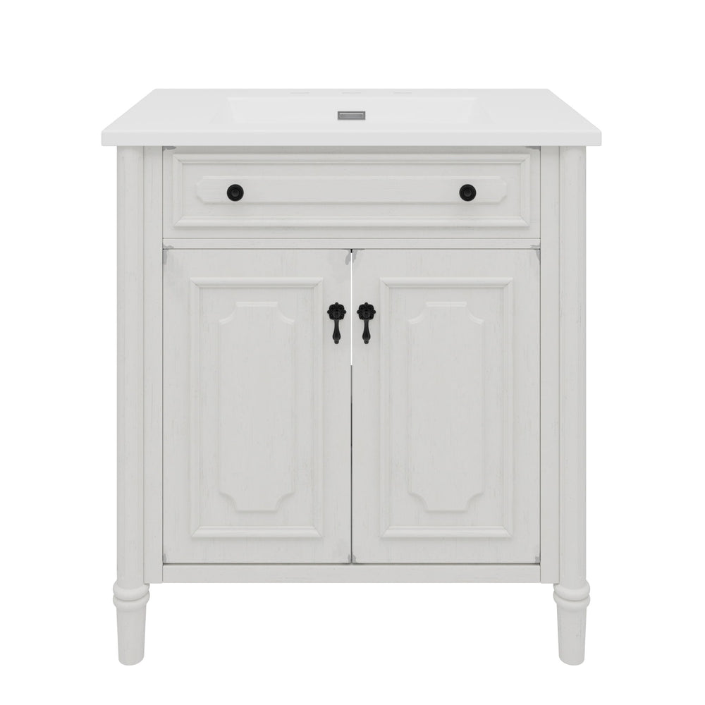 Bathroom Vanity With Sink, Cabinet With Soft Close Doors, Adjustable Shelf, Curved Profile - Ancient White 31.0"W x 18.8"D x 34.4"H - 81.31 lb
