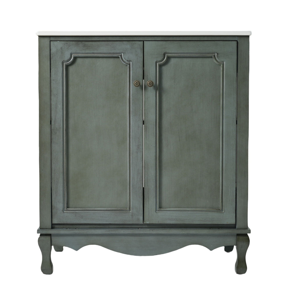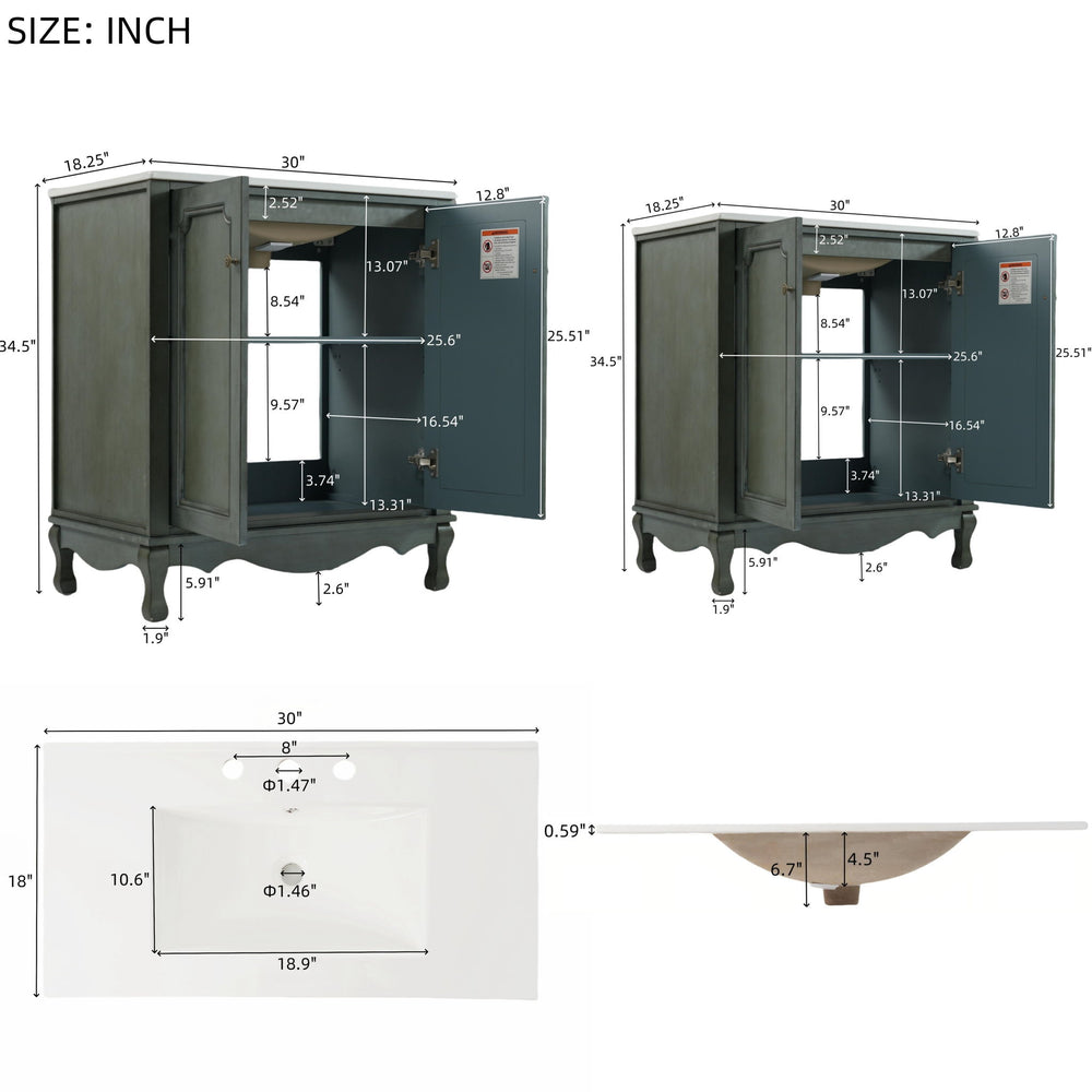 Double Sinks Bathroom Vanity Set, Vintage Bathroom Cabinet With 2 Separate Sinks - Antique Blue Green / Teal 60.0"W x 18.25"D x 34.5"H - 161.82 lb