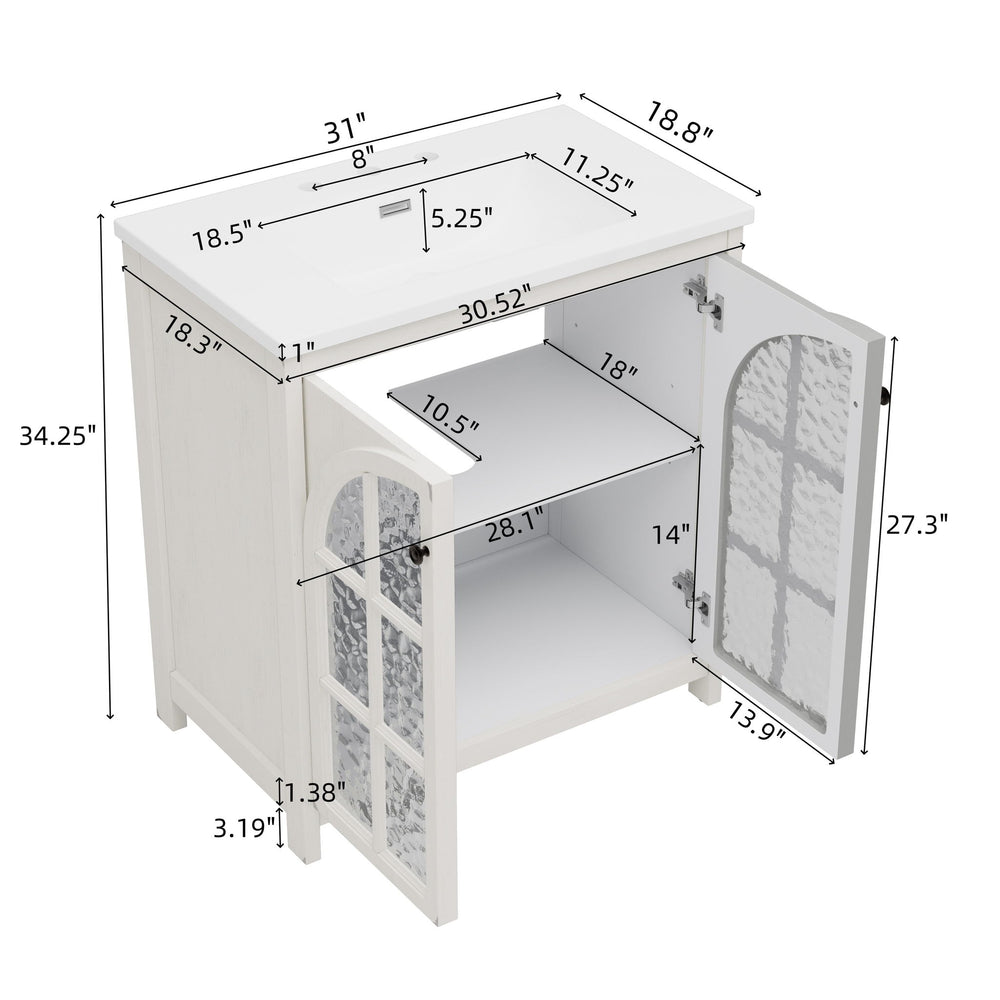 Bathroom Vanity With Sink, Soft Closing Doors - Antique White 31.0"W x 18.8"D x 34.25"H - 86.82 lb