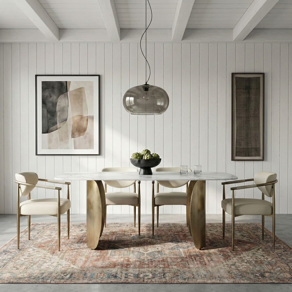Virella - Vegan Leather Upholstered Dining Chair With Gold Base (Set of 2) - Cream 22.0"W x 23.75"D x 29.5"H - 46.0 lb