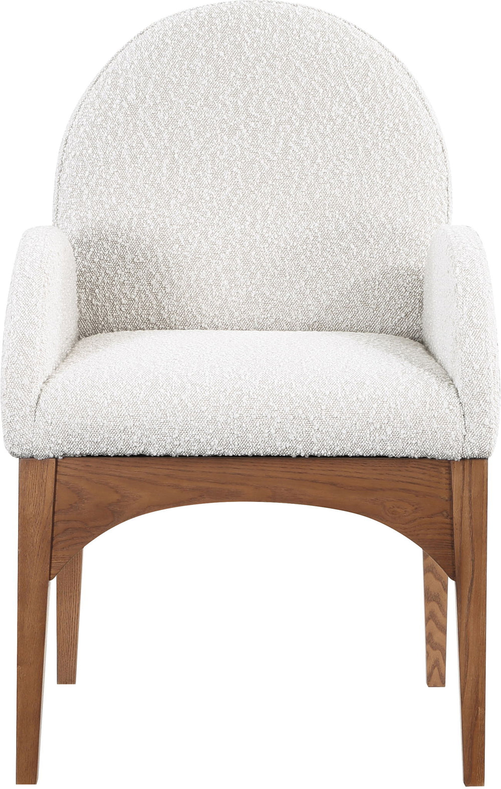 Waldorf - Boucle Dining Arm Chair With Brown Legs - Cream 23.0"W x 23.0"D x 35.5"H - 41.8 lb