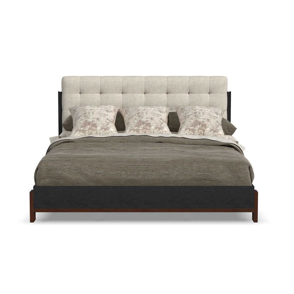 Headboard is upholstered in a performance fabric made from 21 recycled post-consumer water bottles