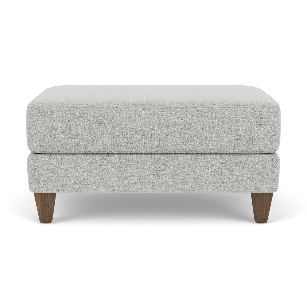 The Westside cocktail ottoman's tapered wooden legs and wider scale makes it a perfect complement to the Westside chair and a half, sectional, or conversation sofa.