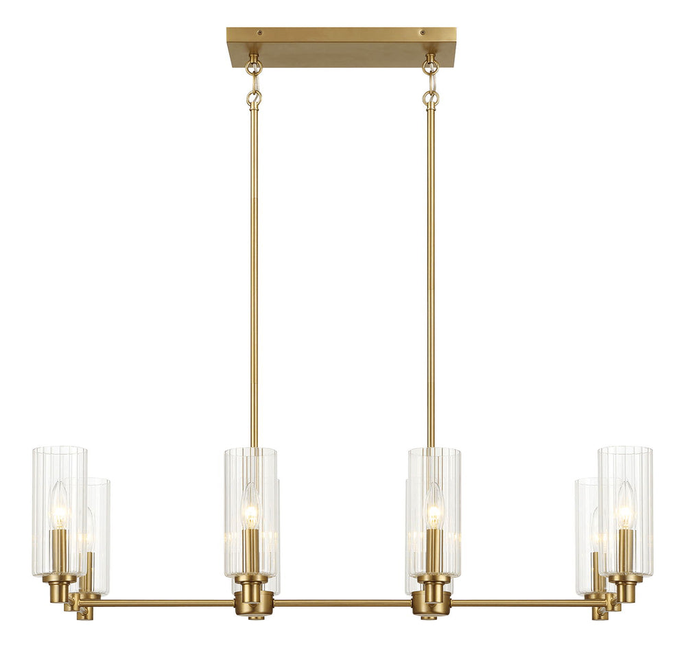 Willow - 8 Lights Island With Clear Ribbed Pendant Lamp Satin - Antique Brass / Clear / Gold 36.0"W x 15.0"D x 9.0"H - 15.0 lb