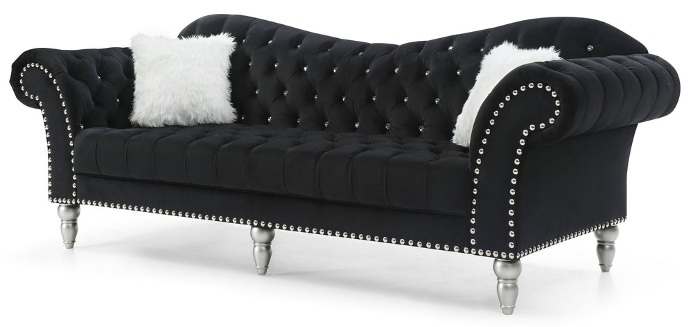 Soft Velvet Fabric: Deep tufted velvet fabric covers this Deco styled upholstery group, providing a luxurious and comfortable feel.