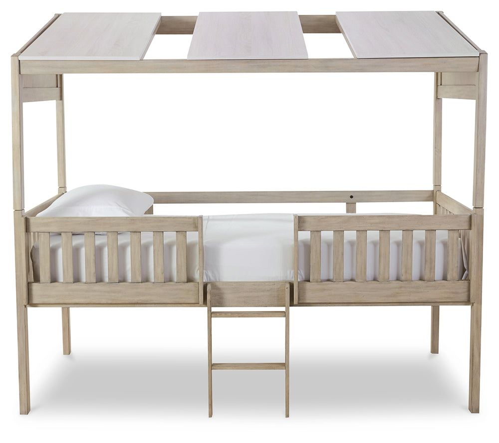 Here’s to a kid-friendly bed that blends in beautifully with modern farmhouse living. This lovely loft bed features a charming front porch railing effect, to help kids create a little home of their own. Coordinating under bed bookcases or rolling storage bins (sold separately) are the perfect accompaniment to this contemporary bedroom suite.