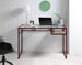 Modern Design: This writing desk features a minimalist design with a clear glass top and a metal frame, blending contemporary style with industrial elegance.