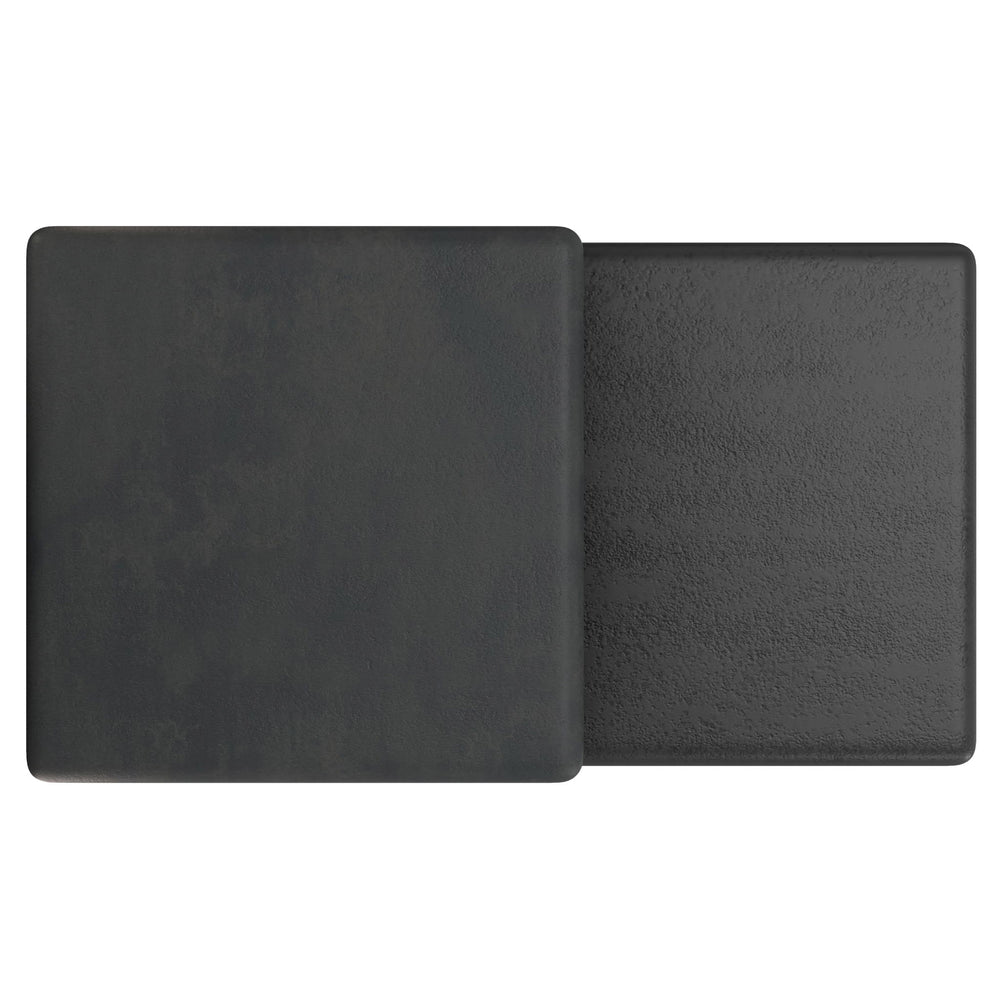 Both tables are hand-finished with lightly textured surfaces; the taller table is in Graphite and the shorter table is in Black Nickel for a subtle contrasting effect.