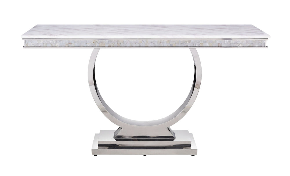 Zander - Printed Faux Marble Top Mirrored Sofa Table - Silver / White 18.0"W x 63.0"D x 33.0"H - 147.0 lb