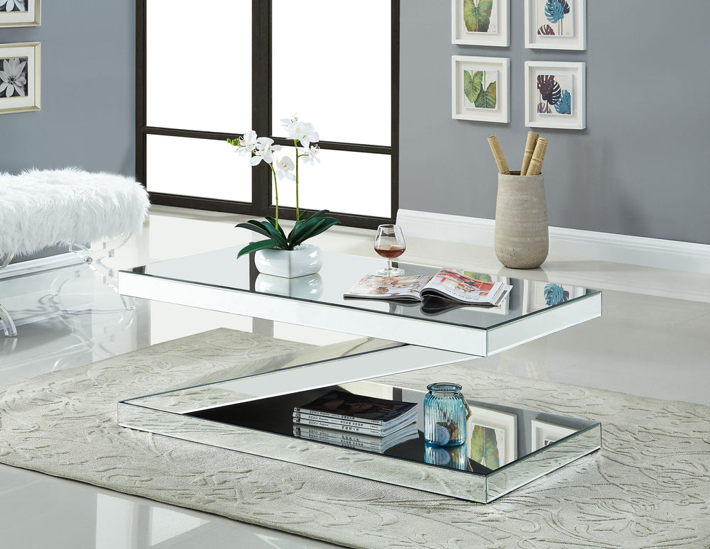 Create an instant focal point in your living room with this Zee table from Meridian Furniture. This handsome table has a unique 'Z' design to catch the eye and garner compliments. The shape gives it a sculptural look, while the mirrored accents add dimension and airiness to your room. Use it on its own or alongside other items in the collection.