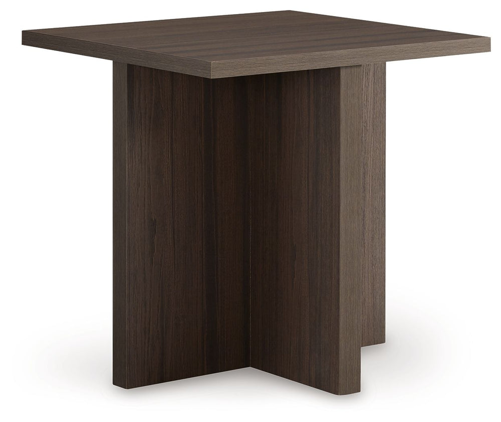 With its geometric allure, this table set serves as a striking focal point for casual or refined settings. Its clean lines and rich dark brown wood-grain finish create a warm and inviting atmosphere of natural beauty. Seamlessly blending with unpretentious lifestyle interiors, these tables offer distinctiveness and functionality.