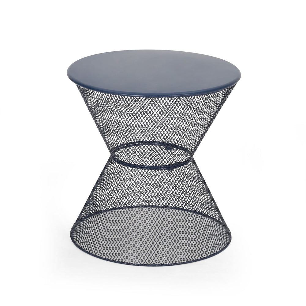 Zine - Outdoor Side Table With Hourglass Shaped And Iron Frame - Navy 17.75"W x 17.75"D x 18.25"H - 5.73 lb